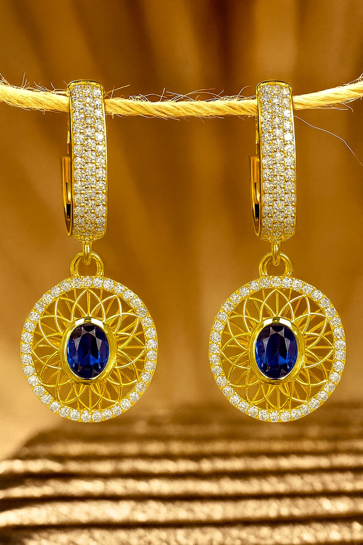There’s a certain art to standing out without trying. The Elysian Gold Earrings do just that. Inspired by old-world grandeur and shaped with the precision of fine architecture, they speak in quiet confidence. The open latticework — deliberate and intricate — frames a deep sapphire that catches light like the sea at dusk. A pavé diamond border lends a touch of brilliance, never overplayed. Whether it’s a dinner under the stars or a city escape, these are earrings for those who understand that elegance is best worn lightly.